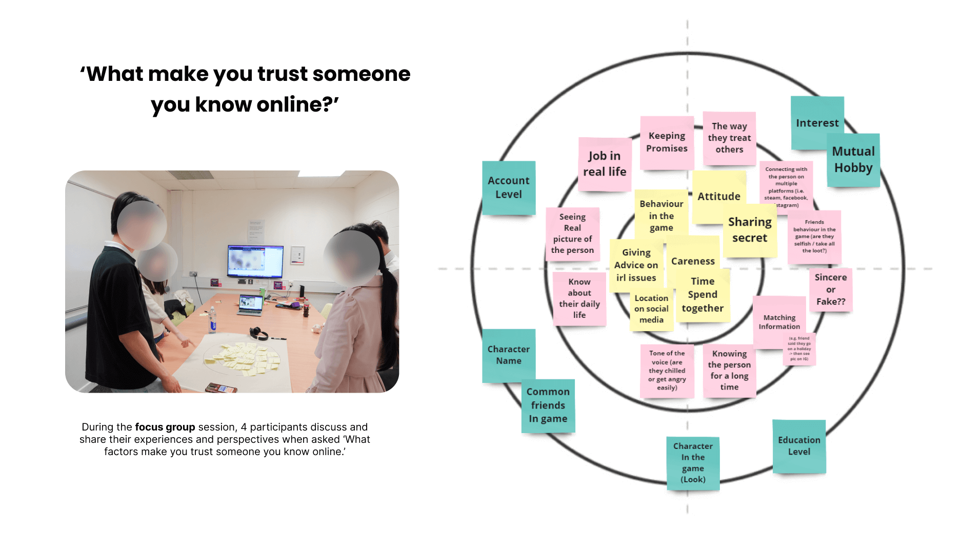 To delve into the nuanced realm of trust and emotions, I recognised that relying solely on semi-structured interviews might not suffice. Therefore, I employed a diverse array of creative research methods. This approach allowed me to thoroughly explore various facets of trust among a group of 8 gamers, some of whom had met their online gaming friends in person while others had not.